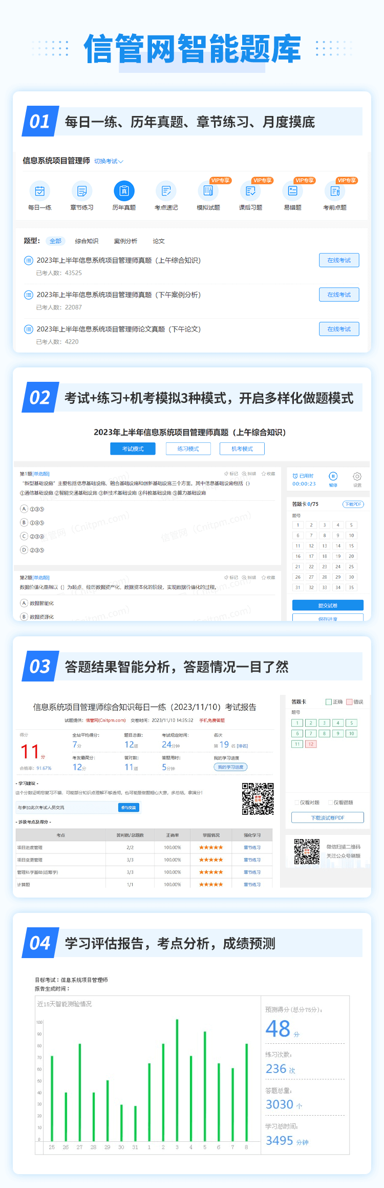 信管網(wǎng)為信息化考試與服務(wù)專業(yè)平臺,目前開設(shè)有信息系統(tǒng)項目管理師、系統(tǒng)規(guī)劃與管理師、系統(tǒng)集成項目管理工程師、信息安全工程師考試與學習服務(wù)。提供了包括考試報名、考試課程、成績查詢、真題發(fā)布、資料下載、案例分析、論文、考試教程、在線題庫、每日一練、章節(jié)練習、信管人才、論壇交流等服務(wù)。我們將為廣大信管考友提供專業(yè)、及時、全面、貼心的考試服務(wù),立足于為廣大信管考友建造一個優(yōu)質(zhì)的學習平臺,讓考生都能夠享受學習,順利通關(guān)。